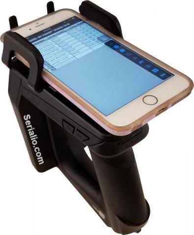idChamp 1862 Bluetooth UHF reader (aka CipherLab 1862) universal mount accessory (scanner pictured is purchased separately) for Android and iPhone smartphones. Clamp arm width: 35 ~ 80 mm.